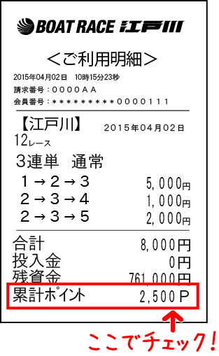 ご投票いただいた際に印刷されるレシートで、貯まったポイントの数がご確認いただけます。