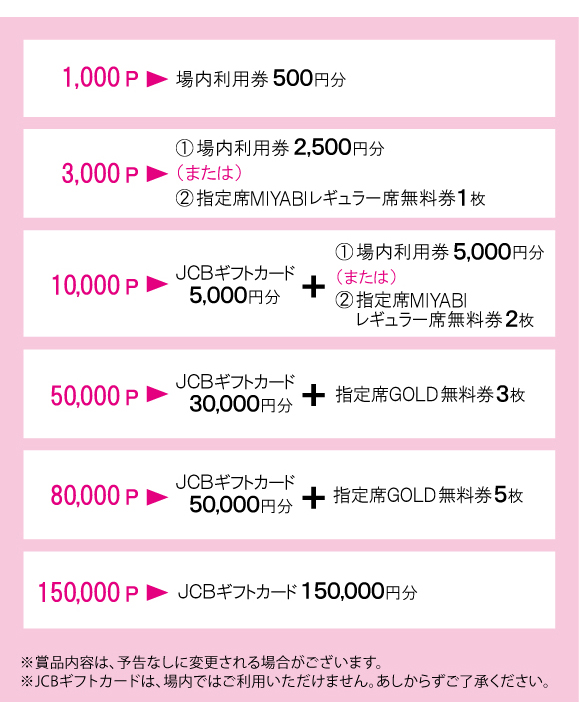 キャッシュレス投票「ポイント交換」賞品一覧