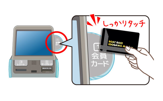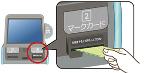 記入済のマークカードを入れて舟券を購入します。(複数枚を同時に挿入することが可能です。)